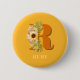 An elegant monogram sunflower floral R design that includes a customizable name beneath the letter. Perfect for teachers and carers and for young students as an attractive identifier. And, a great ornament to be pinned to bags and hats.