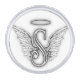 Letter S with angel wings and a halo lapel pin. If you would like me to create one for a different letter, please contact me as I haven't done the whole alphabet.