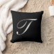 Personalized monogram pillow with a classic script letter T on a Black background. Made in the USA from machine washable cotton or polyester. Perfect for Taylor, Tiffany, Tara, Tori, Tatiana, Tabitha, Tiara, Tamara, Teresa, Tessa, Tia, Tiana or anyone else who's name begins with an initial T.