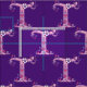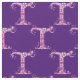 Pretty whimsical initial T drawing converted to graphic letter art in shades of purple and pink on a dark purple background. Background color can be changed to your own color choice if required. Personalized with your own initial this fabric reads T, ideal for customized sewing projects. Other letters available. © Original drawing and design by Sarah Trett. www.sarahtrett.com for www.mylittleeden.com