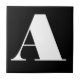 Ceramic letter tiles. Upper or lower case letter tiles. You customize with the letter or letters you need for your ceramic tile or mosaic sign. Letter tile for weather proof signs, house numbers. White on black background.