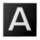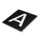 Ceramic letter tiles. Upper or lower case letter tiles. You customize with the letter or letters you need for your ceramic tile or mosaic sign. Letter tile for weather proof signs, house numbers. White on black background.