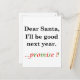A funny Christmas design that always gets a laugh and looks great on apparel and gifts for adults as well as for kids. This unique Xmas design reads: "Dear Santa, I'll be good next year .....Promise!!"