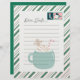 Make your child's holiday season magical with our Holiday Wish List for Kids: A Letter to Santa. These beautifully designed letters have a charming green border and two Christmas stamps. The center is decorated with a cup of sweet treats, a gingerbread man, and a Christmas lollipop. Also in the center of the page is space for writing, with the title "Dear Santa" at the top in a playful font. The festive and whimsical design makes it perfect for kids to write their Christmas wish lists and send them to Santa.