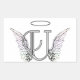 Letter U Initial Monogram with Angel Wings & Halo Rectangular Sticker