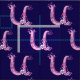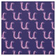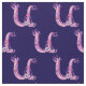 Pretty whimsical letter U hand drawn graphic in shades of purple and pink on a dark blue background. Background color can be changed to your own color choice if required currently dark blue. Personalized with your own initial this fabric reads U, ideal for customized sewing projects. Other letters available. © Original drawing and design by Sarah Trett. www.sarahtrett.com for www.mylittleeden.com