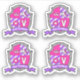 Knights princess style shield crest monogram letter V graphic art stickers in shades of pink, purple and grey. Personalize with your own name or family name beginning V, currently reads Victoria. Ideal for personalizing your belongings if your surname or first name begins with the letter V. Unique unicorn head, tiara crown, and shield crest drawing and graphic art and design by Sarah Trett for www.mylittleeden.com