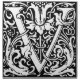 This initial V is part of a complete series of upper case William Morris inspired typography initials. The black and white lettering is highly decorative, styled after the fancy typography of the middle ages. Cute and trendy, this is a vintage chic monogram V - letter V- swirly V . Customize this vintage monogram by changing the background color; just choose "edit design", and edit background color. There is a complete alphabet of these letters. If you need a different letter, please visit the antiqueart store.