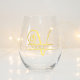 Letter V Monogram Bridesmaid Gift, Modern Elegant Stemless Wine Glass