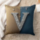 Letter V Monogram With Diamonds Pearls Throw Pillow