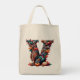 The printing came out very well, better than I had anticipated. The natural color fabric is sturdy with strong seams and comfortable handles. This tote fits easily over my shoulder. As it is filled, the bottom flattens out--very cool! I would buy this product again. This grocery tote holds a lot of groceries! The image quality was very good. The colors were a little darker than I had expected. The darkness may have been due to printing on a natural color fabric rather than on white. The cat design is attractively centered on the tote. The spirit of the design is very lively, just as it appears on the Zazzle website.