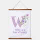 Initial & Name with Floral Design on a Wall-Hanging Tapestry. Personalised with your own name - Design features the recipient's Monogram & Name with Flowers either side in a water color pastel style. Initial is the letter W. Example shows Wilma.