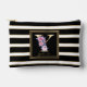 Letter Y Floral Monogram Black White Gold Stripes Accessory Pouch