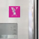 Letter Y Magenta Floral White Metallic Monogram Magnet