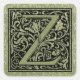 Charming decorative letter Z initial monogram calligraphy style typography first letter in black over vintage sage green - avocado green book lining with off-white Ginkgo biloba leaves.