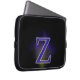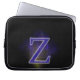 Laptop hoes met de letter Z. (bijvoorbeeld je initiaal) Leuk als je naam met de Z begint of die van een ander. Achter de letter is een raster en mysterieuze wolken met een licht die erop schijnt. De letter Z is gevuld met een plaid patroon en een grijze rand erom heen. kleuren blauw, paars, geel en zwart.