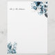 Blue Navy watercolor floral letterhead, personalized with your name or a couple's name, designed for women who appreciate the beauty of watercolor floral aesthetics. This letterhead features a graceful blue navy floral design in a watercolor style, exuding elegance while maintaining a feminine and delicate charm. It's the ideal choice to add a personal touch to your correspondence.