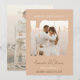 Plain white envelopes are included with paper invitations and will come to fit the invitation size you select. If you don’t need the envelopes, you may choose to not receive them by selecting the dropdown below "Envelopes" and choosing "None." If you’d like to have a design on your envelopes, you can browse all of these available envelopes to find the design that complements your Lettering Love Story Photo Wedding Invitation.