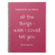 The 'Letters to My Mom' notebook is a heartfelt gift that allows for the expression of unspoken thoughts and feelings. With the phrase 'all the things I wish I could tell you,' it includes a customizable Love, Custom name detail. This personalized, sentimental journal is ideal for anyone wanting to share deep emotions or memories with their mother, making it a thoughtful gift for Mother's Day or any occasion.