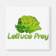 Text reads "Lettuce Prey" in a green shiny font with open lettuce leaves above it. Perfect for vegans/vegetarians, salad lovers, and anyone else who enjoys a good pun.