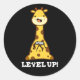 Level Up Funny Giraffe Pun Dark BG Classic Round Sticker