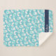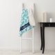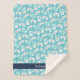 Level up! Our cute vintage gamer themed blanket features a turquoise blue background with an allover pattern of retro video game controllers and handheld consoles. Personalize with child's name in white on a navy blue stripe along the bottom.