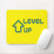Upgrade your workspace with a burst of retro energy! This high-quality mousepad features a vibrant 8-bit "Level Up" pixel art design on a high-visibility neon yellow background.