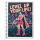 This unique design features a character inspired by retro style and classic video games, encouraging you to "Level Up Your Life!" These are graphics that combine the esthetics of old-time arcade games with a modern message. Perfect for fans of games, retro style and pop culture. The design is full of neon colors, dynamic energy and pixel accents that capture the spirit of computer games from the 80s.