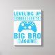 Leveling Up To Big Bro Again - Blue video game controller design for boys who are being a big brother not just once but 2 or more times! Great for new baby reveal gift for the big brother(s)