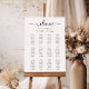 This seating chart poster features a modern minimalist design and 12 tables layout. The script text heading is an image that cannot be edited. The heading image can be resized to fit any poster size. All of the other text is fully editable. For more advanced customization of this design, simply select the "Customize It" button above.