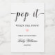 Let your family and friends toast the arrival of your sweet baby with these 'Pop it when she pops' mini bottle favor tags. The tags feature a calligraphy pop it heading with a minimal design. The script 'Pop it" heading is an image that cannot be edited. All of the other text is fully editable. For more advanced customization of this design, simply select the "Customize It" button above.
