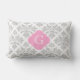Lg Gray White Floral Damask #3 Pink Monogram Label Lumbar Pillow