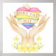 Born this way description in pride rainbow colors heart with two hands holding it in flowers.