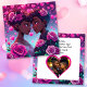 Adorable African-American anime couple embracing surrounded by hearts and flowers. Cute personalized Valentine's Day card for the couple that loves anime! Add your photo and change your text in the personalize area. This card is for a black lgbtqia+ lesbian couple.