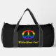 Customizable Duffle Bag with a peace symbol in colors LGBT (lesbian, gay, bisexual, and transgender people) rainbow stripes pride flag, rainbow pride design