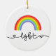 Lightweight, smooth, pure white ornament with nice sheen. Perfect size to be seen from across the room ... and to attract closer inspection! Price was great for ordering enough for the whole family! Clear, bold black design just as requested. Matches the order exactly. Just so nice!