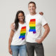 Basic T-Shirt with LGBT (lesbian, gay, bisexual, and transgender people) rainbow stripes map of American state of Mississippi, gay pride flag design, by pinkbrickroad