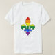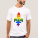 Basic T-Shirt with fleur-de-lis (fleur-de-lys or lily flower) symbol with rainbow stripes from LGBT (lesbian, gay, bisexual, and transgender people) flag, gay pride design