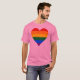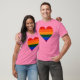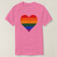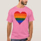 Basic T-Shirt with heart design in colors of LGBT (lesbian, gay, bisexual, and transgender people) rainbow stripes pride flag, rainbow love design