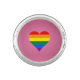 Heart design in colors of LGBT (lesbian, gay, bisexual, and transgender people) rainbow stripes pride flag, rainbow love gay pride design on pink background
