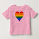 Toddler Ringer T-Shirt with heart design in colors of LGBT (lesbian, gay, bisexual, and transgender people) rainbow striped pattern pride flag, rainbow love design