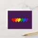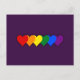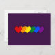 Design with hearts in colors of LGBT (lesbian, gay, bisexual, and transgender) rainbow stripes pride flag, rainbow love gay pride design on purple background