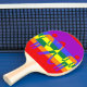 Let the games begin! LGBT Pride symbol on a ping pong paddle. Cool! Rainbow people and the Lambda symbol... Very colorful!
