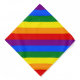 Wear this LGBT bandana to show your support. The simple rainbow striped design includes shades of red, orange, yellow, green, blue and purple at a 45 degree angle. Show your pride!