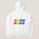 Hoodie with text sign in colors of LGBT (lesbian, gay, bisexual, and transgender people) pride flag, rainbow pride design