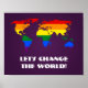 Value Poster with LGBT (lesbian, gay, bisexual, and transgender people) rainbow stripes map of world, gay pride design on purple background, Let's Change the World template text, by pinkbrickroad