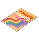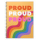 A notebook featuring a pride rainbow with the word PROUD in the colours of the lesbian pride flag.