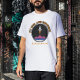 T-Shirt with a beautiful illustration of a space rocket with cloud in bisexual flag colors.