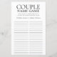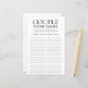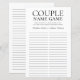 This lovely rustic LGBTQ Couple Name Game wedding shower game sheet is simple and charming - perfect for any shower celebrating 2 male identifying partners. This fun and easy game is sure to bring lots of laughter to any shower. Simply give a sheet to each guest (don't forget the pens) and let the fun begin! You'll be amazed at how many different words people come up with using the names of the happy couple. To make this game your own simply select Personalize this template and type in the names of the marriers.