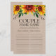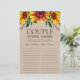 This lovely rustic sunflowers LGBTQ Couple Name Game bridal or couples shower game sheet is elegant and charming - perfect for any garden, botanical, rustic, romantic, floral, formal or vintage wedding. Its exquisite combination of graceful multi-hued watercolor sunflowers and wispy greenery is flowy, delicate, and beautiful. This fun and easy game is sure to bring lots of laughter to any shower. Simply give a sheet to each guest (don't forget the pens) and let the fun begin! You'll be amazed at how many people come up with long words using the names of the happy couple. To make it your own simply select Personalize this template and type in the names of the marriers.